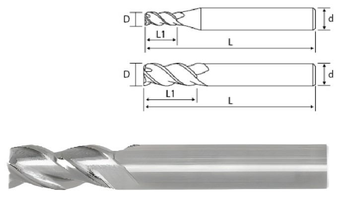 Aluminum Milling Cutter — 3 Flute Mirror Flat End Mill