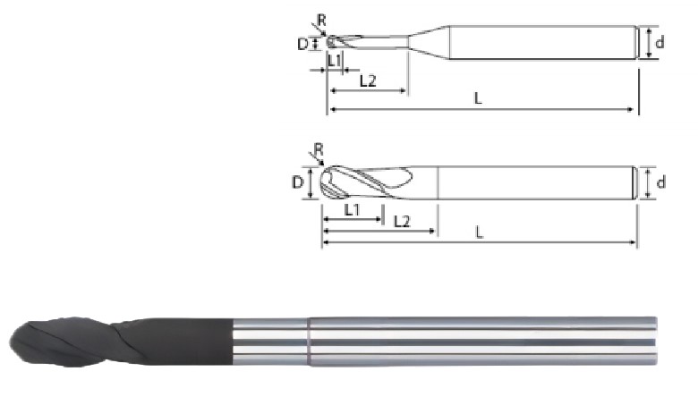 High-Speed Graphite Milling Cutter — 2 Flute Ball End Mill