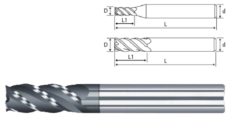 Aluminum Milling Cutter — 3 Flute Mirror Flat End Mill