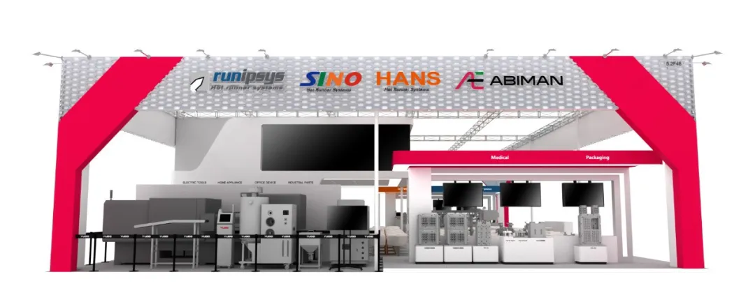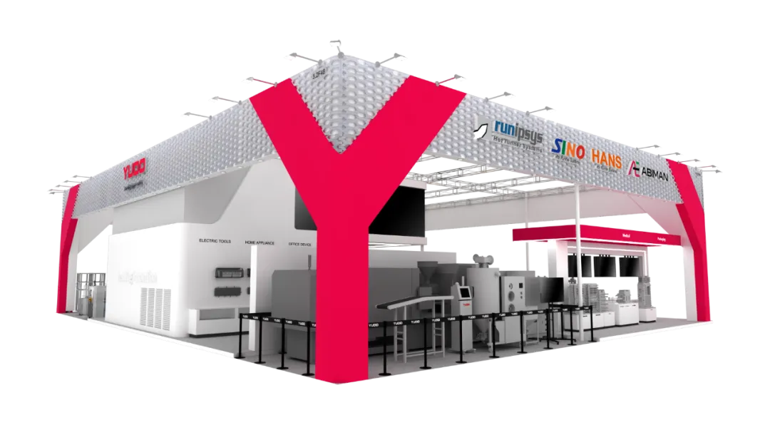 TINA PLS series AG oblique nozzle series for headlight injection molding, Langli high-quality automotive parts injection system, TINA PMC hot nozzle series for medical and packaging multi-cavity plates, ISO diffusion welding technology, and YUDO machinery (ABIMAN manipulator, mold temperature controller, dehumidification dryer), etc. YUDO brought a variety of hot runner innovative solutions to CHINAPLAS 2024.